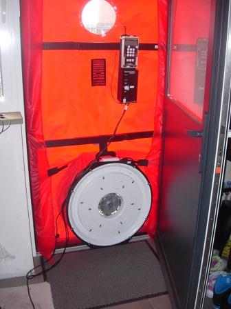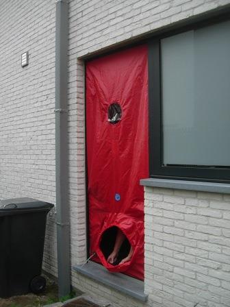 Blowerdoortest : buitenzicht Blowerdoortest : binnenzicht Luchtdichtheid : folies rond het schrijnwerk
